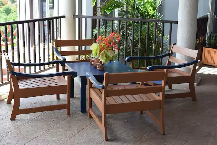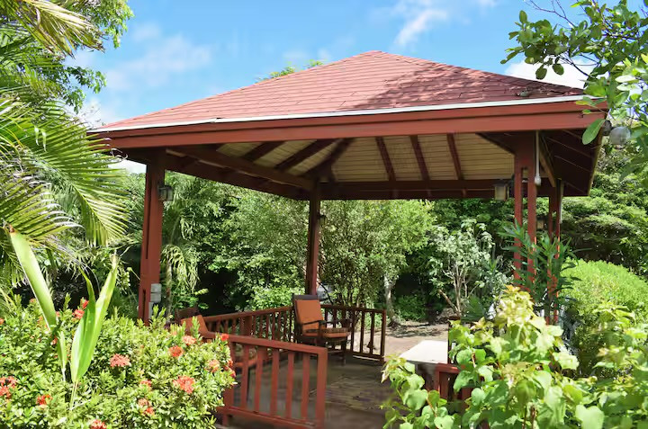 tropical blooms, perfect for yoga, morning coffee, reading, or intimate outdoor dining.